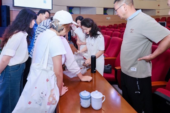 第二环节为中药材辨别互动。现场准备了五组药材,包括真伪川贝母、优劣党参、不同等级黄芪、不同年份陈皮及人参等,邀请观众上台参与辨识。马老师现场指导,帮助大家巩固所学知识。讲座结束后,她还耐心解答观众提问,并对部分观众自带的药材样品进行了专业鉴定。