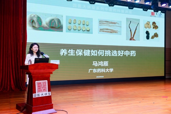 活动分为两个环节。第一环节为专题讲座,马鸿雁老师从中药材的真伪优劣对安全性与有效性的影响切入,强调药材质量直接关系到中药疗效。她系统介绍了中药材的多重属性,指出其农产品属性在监管不足时易引发的质量问题,并重点讲解了中药鉴定的常用方法,尤其是“眼看、手摸、鼻闻、口尝”等简便实用的经验鉴别技巧。马老师还结合实例,生动演示了如何辨别川贝、酸枣仁、冬虫夏草、陈皮等药材的真伪,以及党参、黄芪、三七、人参等药材的优劣,为观众带来满满的“干货”分享。