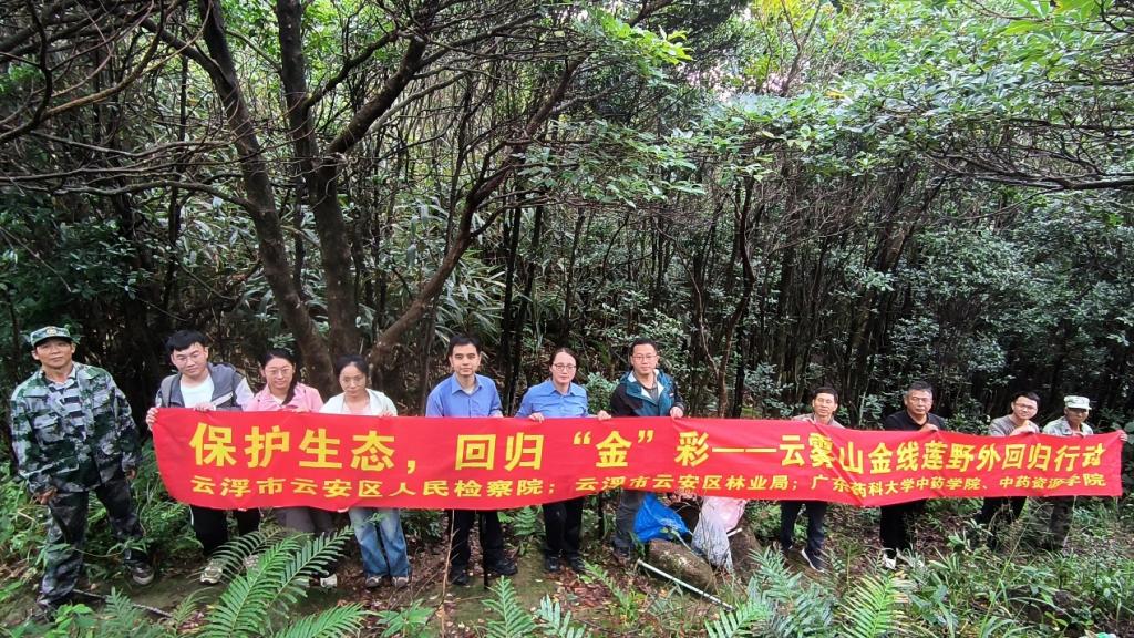 2025年10月23日,一场意义非凡的“云雾山金线莲野外回归行动”在群山间顺利收官。由广东药科大学中药学院、中药资源学院联合云浮市云安区人民检察院、云安区林业局共同发起的此次行动,成功将1500余株人工扩繁的金线莲种苗,送回了它们的原生家园。