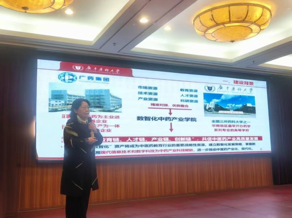 广东省示范性数智化中药产业学院由我校与广州医药集团等行业龙头企业共建,始终坚持 "产业链-创新链-人才链-教育链"四链融合 的建设理念。通过此次研讨会及联合实验室的建立,产业学院不仅分享了以数智化破解产业痛点的前沿思考,更将赋能方案切实落地。学院将继续发挥其作为"政校企行"协同枢纽的作用,培养兼具中医药思维与数智化能力的复合型人才,攻关产业关键技术,构建开放协同、可持续的中医药全产业链新生态,服务广东区域经济高质量发展。