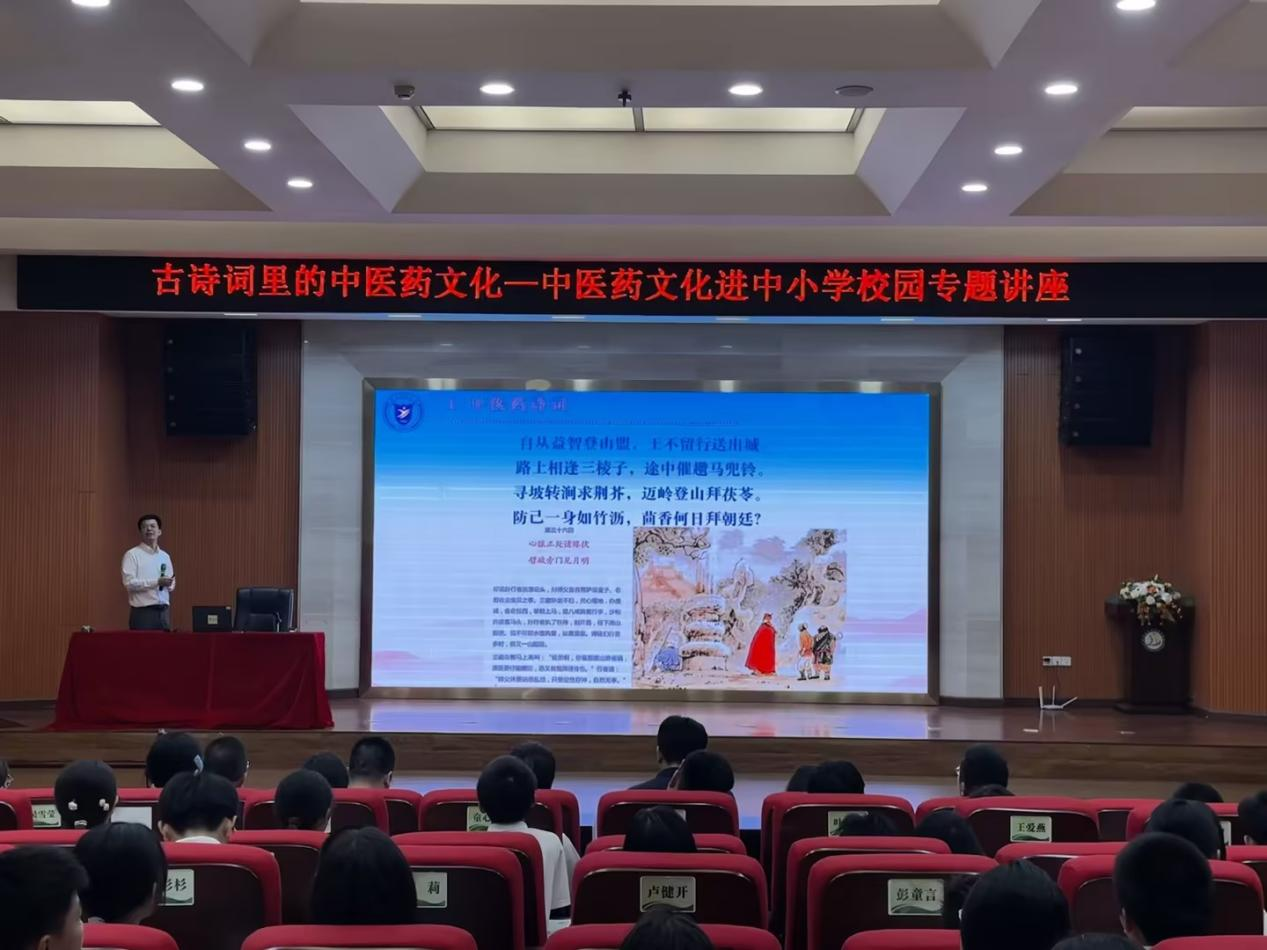 活动伊始,时军教授为师生带来《古诗词里的中医药文化》专题讲座。时教授从百合、薏苡等药食同源素材切入,生动解析诗词中的中医药智慧,引领同学们感受传统文化的独特魅力,现场气氛热烈。